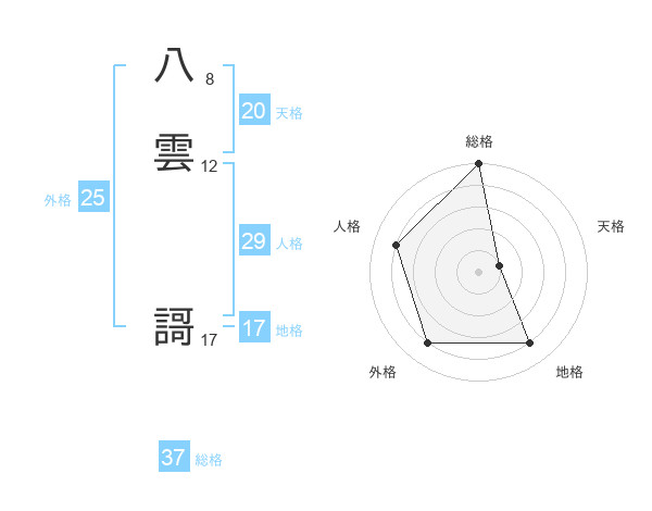 八雲 謌さんの総格は37画の5点!