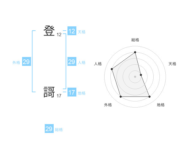 登 謌さんの総格は29画の4点!