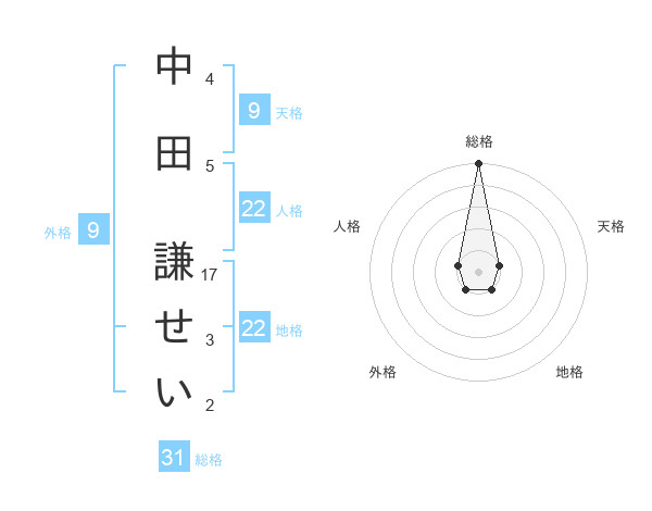 中田 謙せいさんを姓名の画数から五運を鑑定