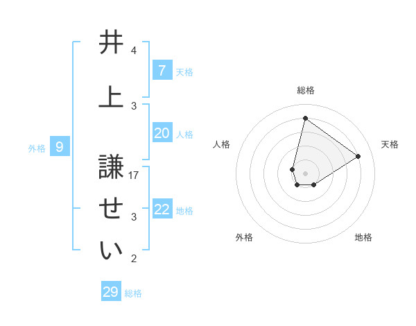 井上 謙せいさんを姓名の画数から五運を鑑定