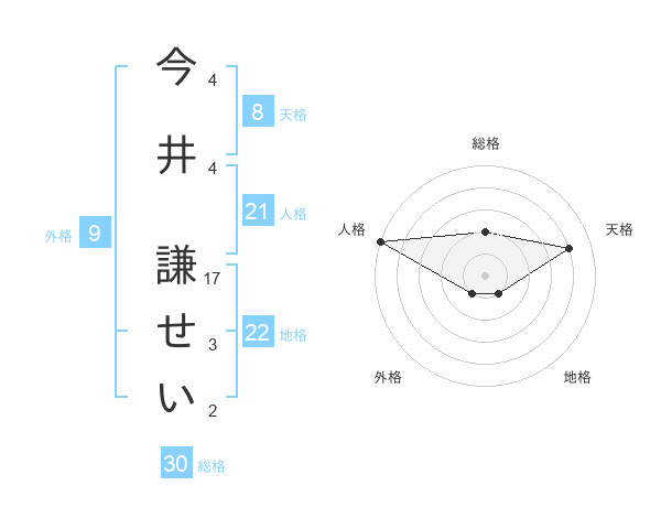 今井 謙せいさんを姓名の画数から五運を鑑定