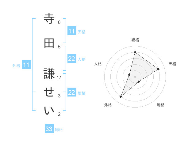 寺田 謙せいさんを姓名の画数から五運を鑑定