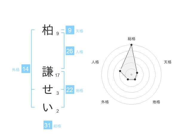 柏 謙せいさんの総格は31画の5点!