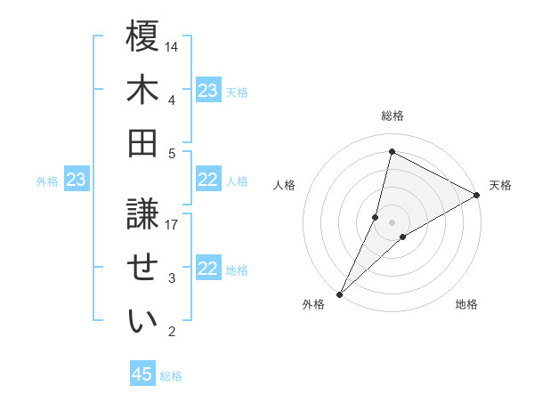 榎木田 謙せいさんの天格は23画の5点!