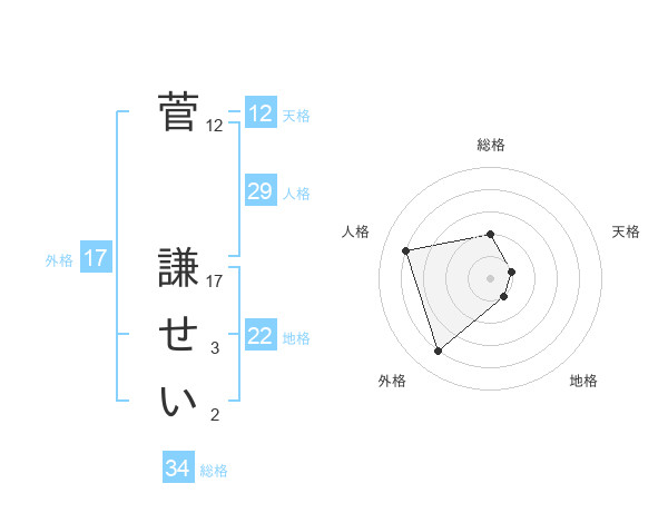 菅 謙せいさんを姓名の画数から五運を鑑定