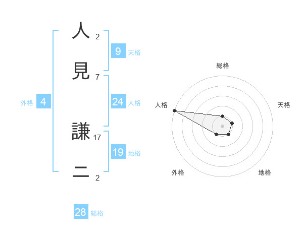 人見 謙ニさんを姓名の画数から五運を鑑定