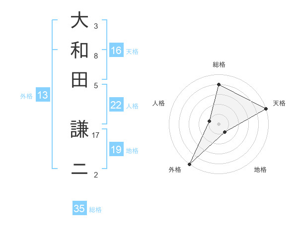 大和田 謙ニさんを姓名の画数から五運を鑑定