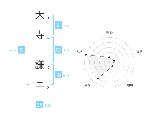 大寺 謙ニさんの外格は5画の4点!