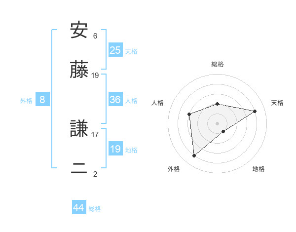 安藤 謙ニさんを姓名の画数から五運を鑑定