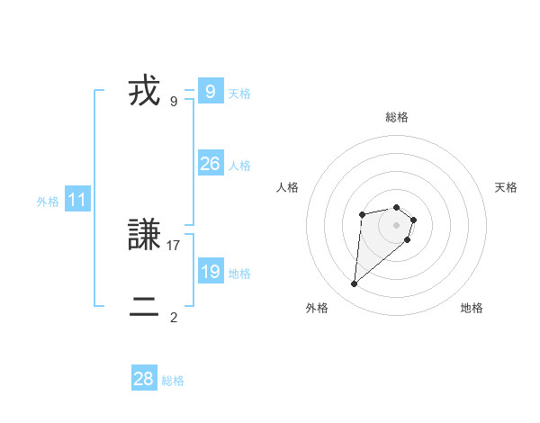 戎 謙ニさんを姓名の画数から五運を鑑定