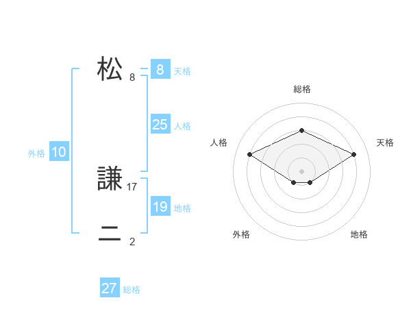 松 謙ニさんの天格は8画の4点!