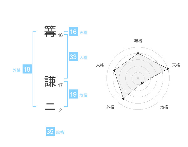 篝 謙ニさんを姓名の画数から五運を鑑定