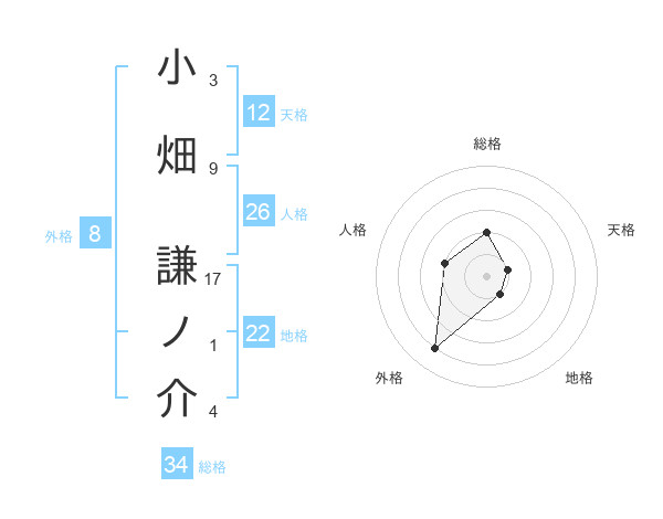 小畑 謙ノ介さんの総格は34画の2点!