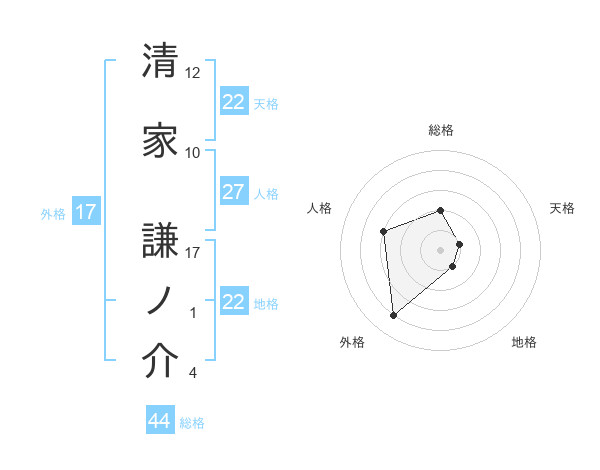 清家 謙ノ介さんを姓名の画数から五運を鑑定