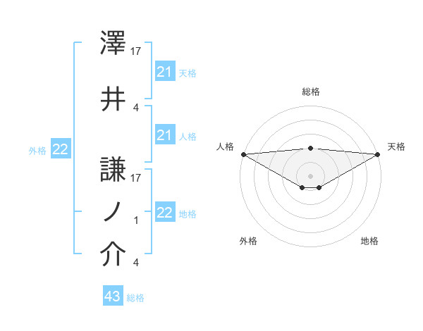 澤井 謙ノ介さんを姓名の画数から五運を鑑定
