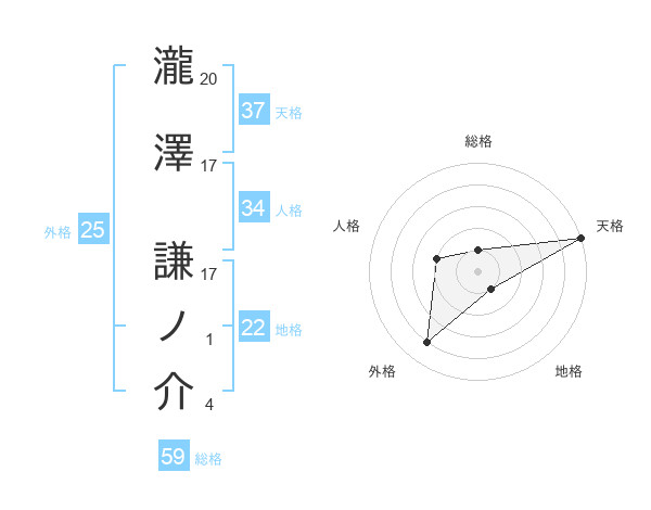 瀧澤 謙ノ介さんの天格は37画の5点!