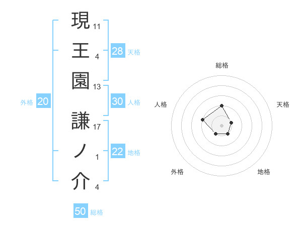 現王園 謙ノ介さんを姓名の画数から五運を鑑定