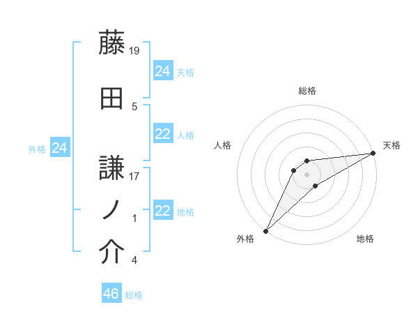 藤田 謙ノ介さんの天格は24画の5点