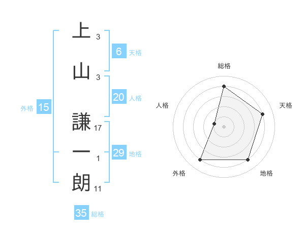 上山 謙一朗さんを姓名の画数から五運を鑑定