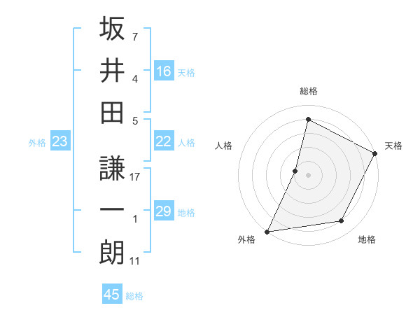 坂井田 謙一朗さんを姓名の画数から五運を鑑定