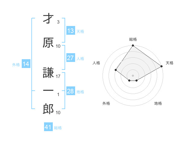 才原 謙一郎さんを姓名の画数から五運を鑑定