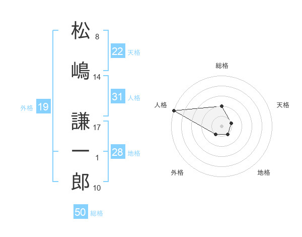 松嶋 謙一郎さんを姓名の画数から五運を鑑定