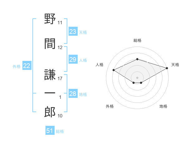 野間 謙一郎さんの総格は51画の3点!