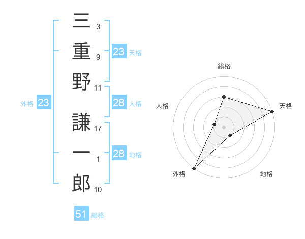 三重野 謙一郎さんを姓名の画数から五運を鑑定