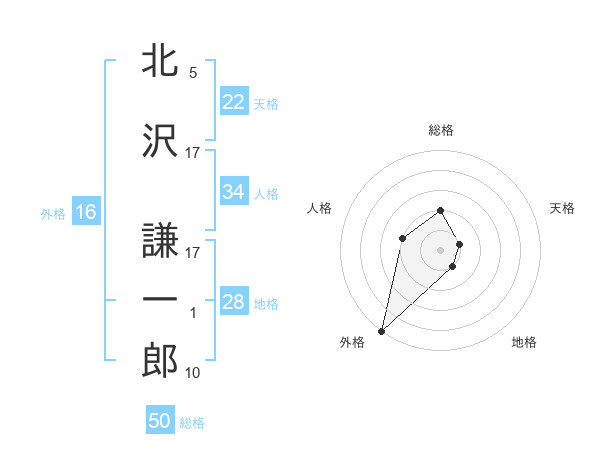 北沢 謙一郎さんを姓名の画数から五運を鑑定