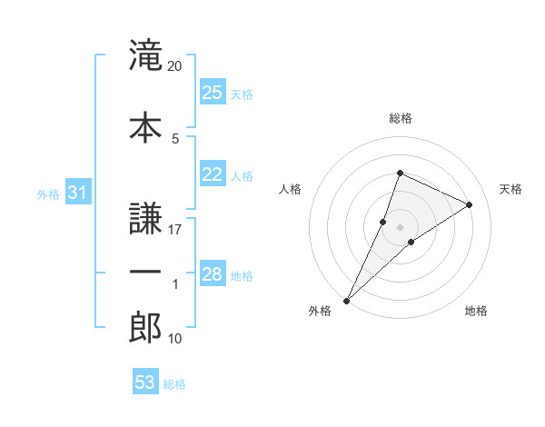 滝本 謙一郎さんを姓名の画数から五運を鑑定