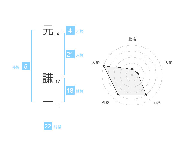 元 謙一さんの人格は21画の5点!