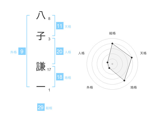 八子 謙一さんの総格は29画の4点!