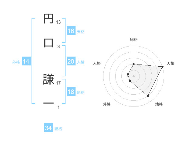 円口 謙一さんの天格は16画の5点!