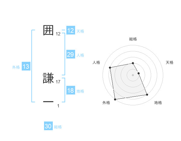 囲 謙一さんの天格は12画の1点!