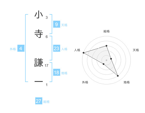 小寺 謙一さんの総格は27画の3点!