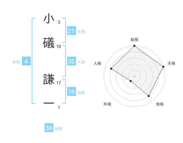 小礒 謙一さんの天格は21画の5点!