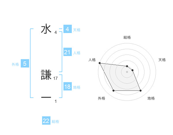 水 謙一さんの人格は21画の5点!