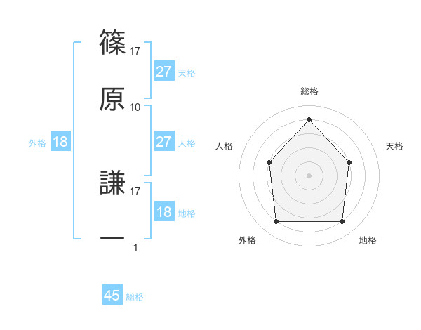 篠原 謙一さんの総格は45画の4点!