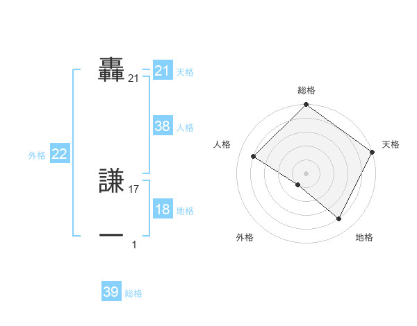 轟 謙一さんの天格は21画の5点!