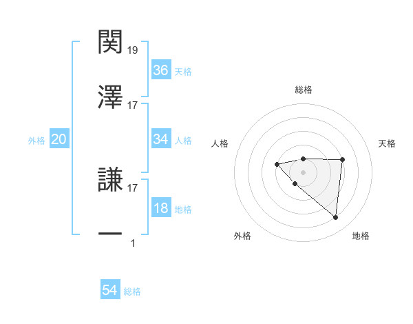 関澤 謙一さんを姓名の画数から五運を鑑定