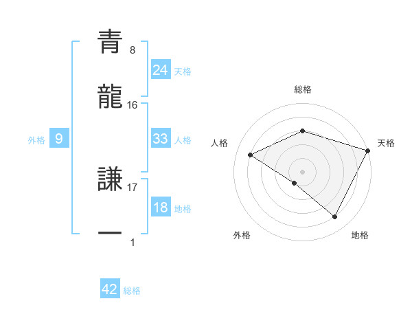 青龍 謙一さんを姓名の画数から五運を鑑定