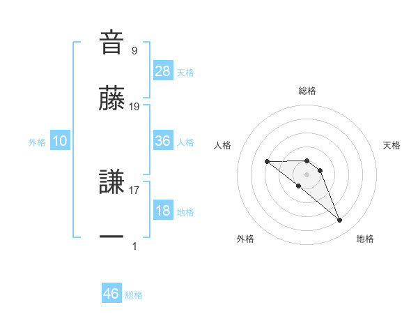 音藤 謙一さんを姓名の画数から五運を鑑定