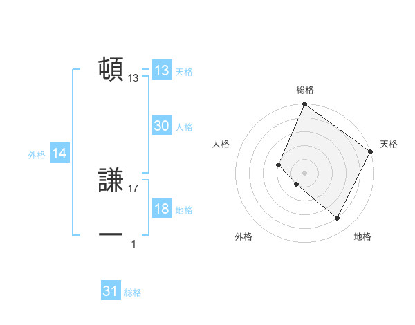 頓 謙一さんの天格は13画の5点!