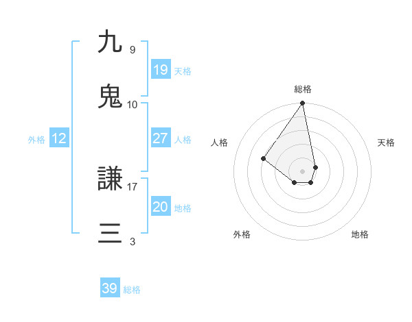 九鬼 謙三さんの天格は19画の1点!