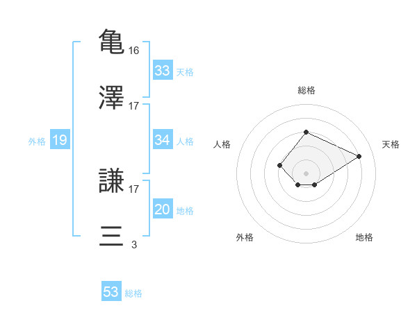 亀澤 謙三さんを姓名の画数から五運を鑑定