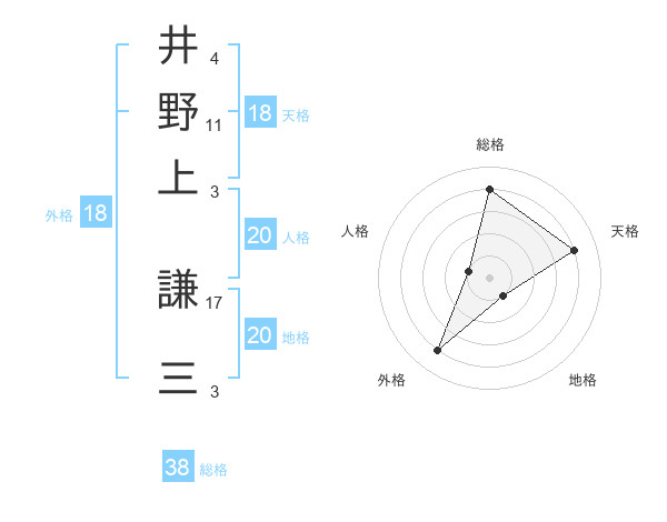 井野上 謙三さんを姓名の画数から五運を鑑定