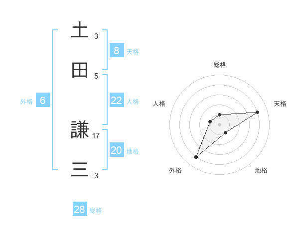 占い結果は姓名判断である以上、良い場合も悪い場合もありますが、決してお名前を誹謗中傷するものでなく、画数の自動計算によって得られたものです。また、本サイトの検索によって得られた鑑定結果で、第三者を誹謗中傷したり名誉を棄損するような行為を禁じます。
