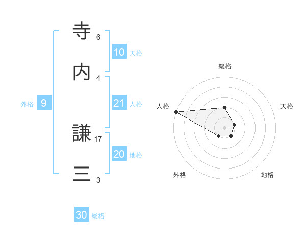 寺内 謙三さんの総格は30画の2点!