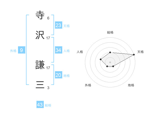 寺沢 謙三さんを姓名の画数から五運を鑑定