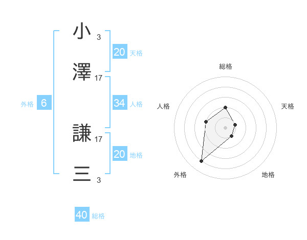 小澤 謙三さんの天格は20画の1点!
